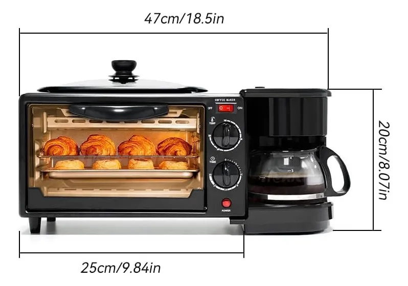 Con la Máquina de desayuno 3 en 1 podrás tener un desayuno espectacular en solo unos minutos ahorrando el tiempo de preparar cada producto por separado. Esta máquina tiene múltiples funciones. Como tostadora multifuncional, cafetera y plancha tamaño familiar.